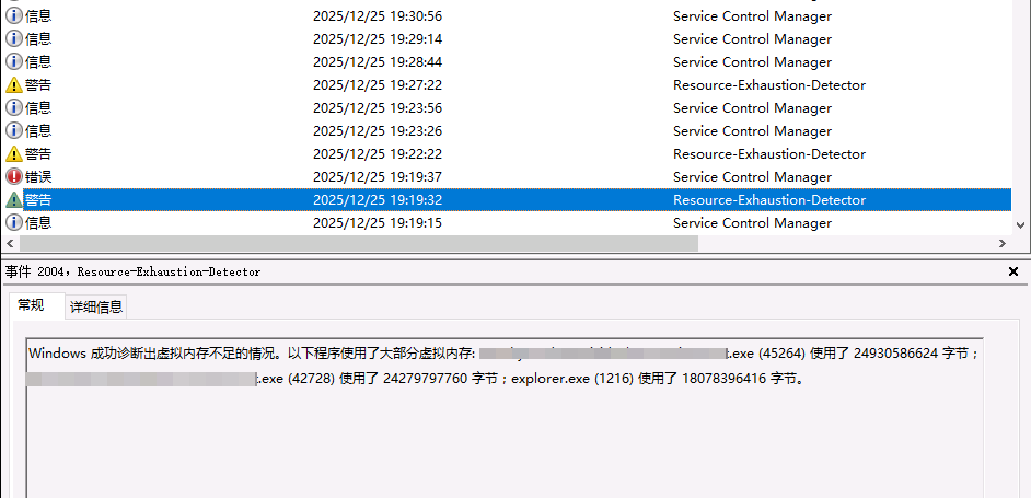 2025/12/25又出现服务器A内存不足,重启NetSignCNGGuardService未能释放足够的内存,依旧不足。